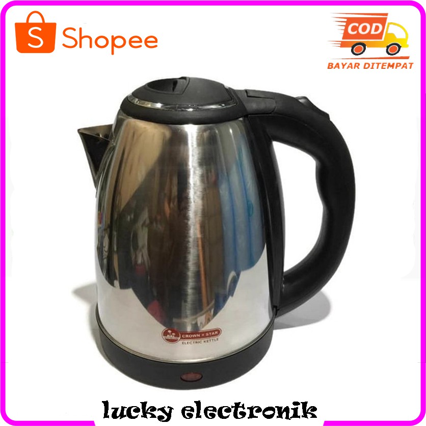 CROWN STAR Electric Elektrik Kettle Teko Listrik Pemanas Air 1.8 LCROWN STAR Electric Elektrik Kettle Teko Listrik Pemanas Air 1.8 LKapasitas 1.8 LBahan Stainless Steel terbaikketebalan teko 0.4 mmKabel 0.75 mm2 x 0.7 mwatt 1500Berat produk 900 gramukuran produk : 17x20x23Berat volumetrik : 1