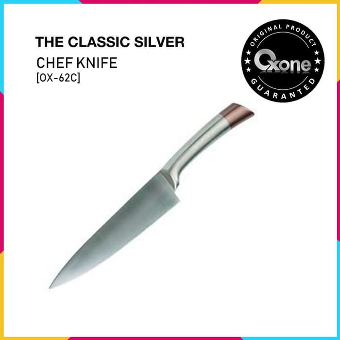 NEW !! OXONE Classic Chef Knife 8" OX-62CMerk : OxoneKualitas : ORIGINALUkuran : 8 inchJenis : CHEF KnifeBahan : Stainless 18/10# DESKRIPSI :- 7" Chef knife 1.8mm- Material: blade: 3Cr13 with anodised- Tapered grind handle: S.S.#18/0 with end 1/4 with brow silk coating- Handle Ergonomis- Panjang keseluruhan 33.5cm- Anti Karat- Mudah digu