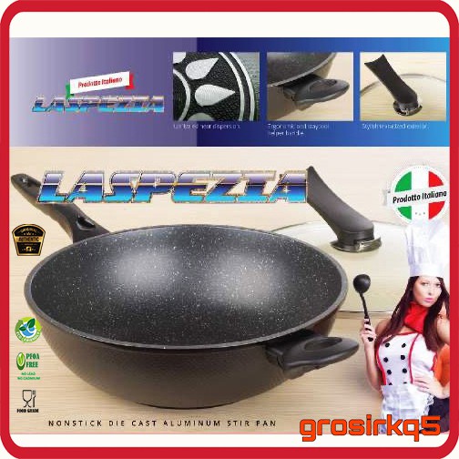 WOK PAN 32 CM LASPEZIADengan tutup kaca terbaru Type Z (lebih mewah dan kuat)Tempered glass lidWok pan 32 Laspezia adalah panci/penggorengan dengan teknologi khusus yang membuat masakan menjadi matang sepenuhnya.Cukup menggunakan sedikit minyak atau tanpa minyak sehingga makanan yang kita makan menjadi lebih sehat.Dengan desain dan teknologi khusus sehingga membuat masakan cepat matang dan otomatis menghemat pemakaian gas.Tahan gores, anti lengket, FOOD GRADE serta memiliki desain dan ukuran yang besar serta mudah dibersihkan, sehingga membuat anda tidak perlu terlalu banyak menggunakan alat masak lain. Dimensi produk : diameter 32 cm, tinggi 10 cmCara pasang knob tutup kaca : https://youtu.be/D7Krqf5mkXkNote : ALWAYS READY, free bubble wrap packing.Note : Disarankan agar lebih aman untuk menambahkan bubblewrap dan kardus.Please Note!!Kami menyarankan untuk menggunakan asuransi pengiriman terlebih untuk pengiriman via expedisi dalam dan keluar kota/daerah.Terima k