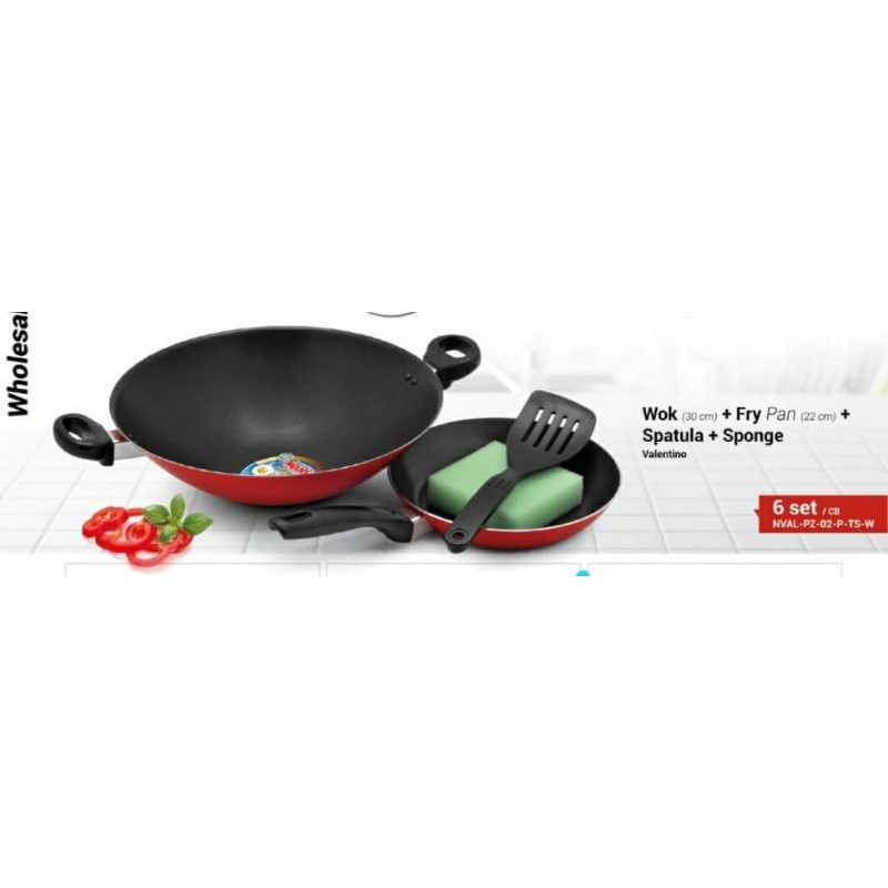 MAXIM Valentino Set (2 Pcs) Penggorengan / Wajan Teflon Maxim Serbaguna Fitur: - 1 Set terdiri dari 2 peralatan masak (Wok 30 cm + Frypan 22 cm) - Dilengkapi spatula plastik dan sponge - Material lebih kokoh dan dilapisi anti lengket (teflon classic) - Model lebih dinamis - Mudah digunakan dan dibersihkan - Sangat cocok untuk digunakan sendiri atau arisan/hadiah (doorprize) Mampu membuat gorengan apapun dan membuat anda menjadi cepat untuk menggoreng makanan. Dengan handlenya yang nyaman dipegang membuat anda lebih mudah dalam memasak. Dilapisi dengan DuPont nonstick coating yang terbuat dari polymer Teflon yang sudah tersertifikasi FOOD GRADE dan SANGAT AMAN untuk keperluan masak-memasak sehari-hari. DuPont non-stick coating frypan sudah teruji secara global dan lulus dari berbagai Quality Standard dunia selama 30 tahun lebih dan digunakan di berbagai restoran ternama dan chef-chef terkenal di seluruh dunia. Tidak seperti bahan-bahan teflon konvensional lainnya, DuPont non-stick coating ini dilengkapi dengan 3 lapisan utama, yaitu : 1. Top-coating : memudahkan anda untuk mengangkat makanan dengan mudah tanpa ada lengket dan sangat mudah untuk dibersihkan 2. Mid-coating : lapisan kedua ini memberikan ketahanan yang luar biasa dari abrasi / goresan dari alat-alat rumah tangga anda lainnya seperti bahan-bahan yang terbuat dari besi, kawat pencuci, kayu, dan bahan2 lainnya 3. Primer-coating : lapisan terbawah yang memberikan perlindungan ekstra terhadap suhu yang tinggi dan benturan dengan benda-benda lainnya Dimensi : 39 x 12