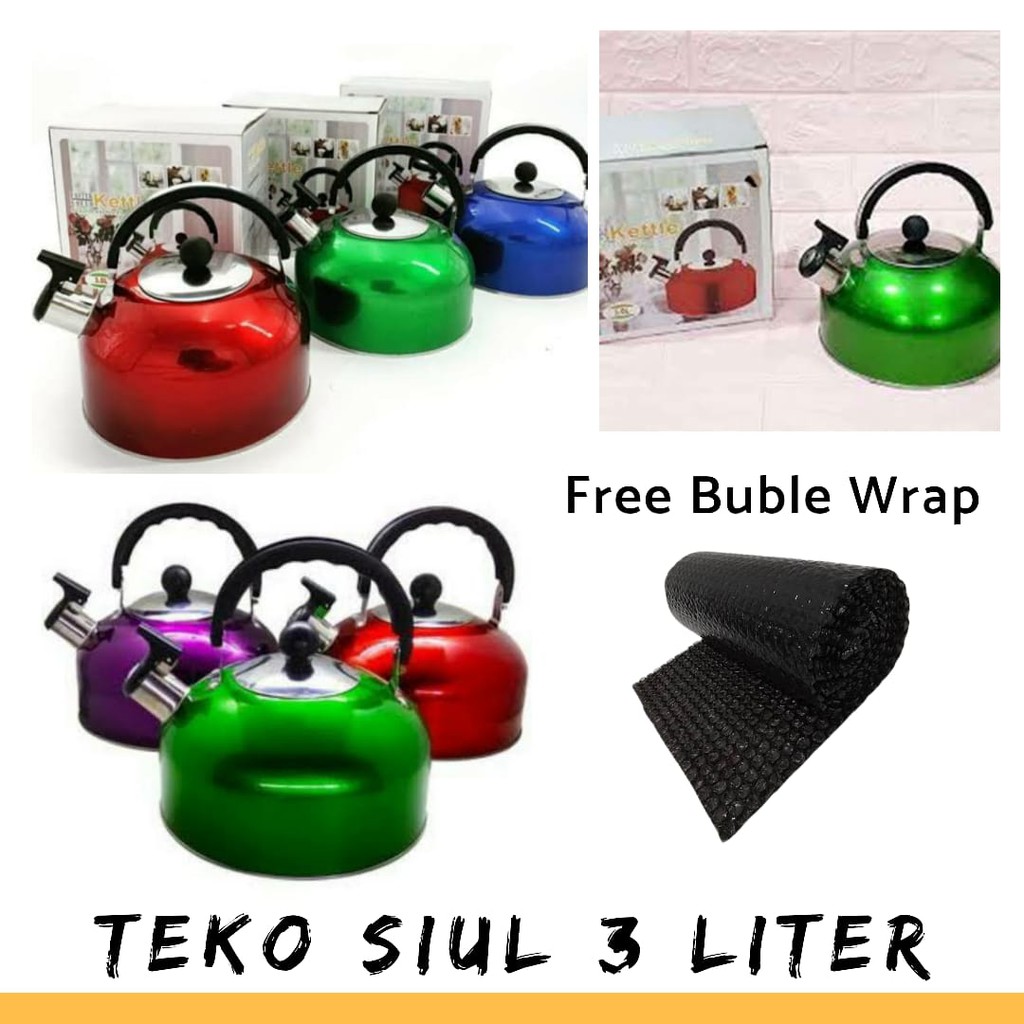 Deskripsi Teko Siul 3 liter / Whistling Kettle / Ketel Siul StainlessWhistling Kettle Stainless / Teko Siul Bunyi / teko siul 3 Liter(NB: Tambahkan Beli/ATc Kardus tambahan Packing guna kemanan barang saat pengiriman untuk barang anda sendiri)Teknologi terbaru digunakan dalam pembuatan alat masak seperti kettle/teko ini, dengan desain elegan berbahan stainless menjadikan kettle ini tampil beda dengan produk lainSelain desain yang cantik keunggulan teko ini akan memberikan tanda ketika air mendidih dengan suara siul seperti peluit dibagian tutup teko/ketel ini. disertai handel teko anti panas dan tutup teko serta di bagian out put teko terdapat alat deteksi uap mendidih dan akan berbunyiSpesifikasi Produk :- Material Stainless steel ware- Dimensi Produk : 19 x 19 x 18 cm- Dimensi Box :20 x 13,5 x 20 cm (kubikasi)- Dimensi Volume Kettle 3,0 L- Pegangan kettle terdapat anti panas- Terdapat Alat Untuk Deteksi air saat mendidih dan mengeluarkan BunyiDengan ketel/teko siul ini memudahkan kita saat melakukan memasak air untuk membuat kopi,teh,susu,rebus racikan jamu,dll dengan indikator bunyi menjadikan ketel/teko ini diminati banyak orangBerbahan stainless steel ware menjadikan teko ini tampil tampak mewah bahan stainless menkilat anti karat dan mudah penyimpanan teko ini bisa digunakan usaha Ukm seperti warung,kedai,penjual minuman lainnya atau dipakai dirumah,dibawa saat camping,di kos"an dll serta mudah dibawa kemana