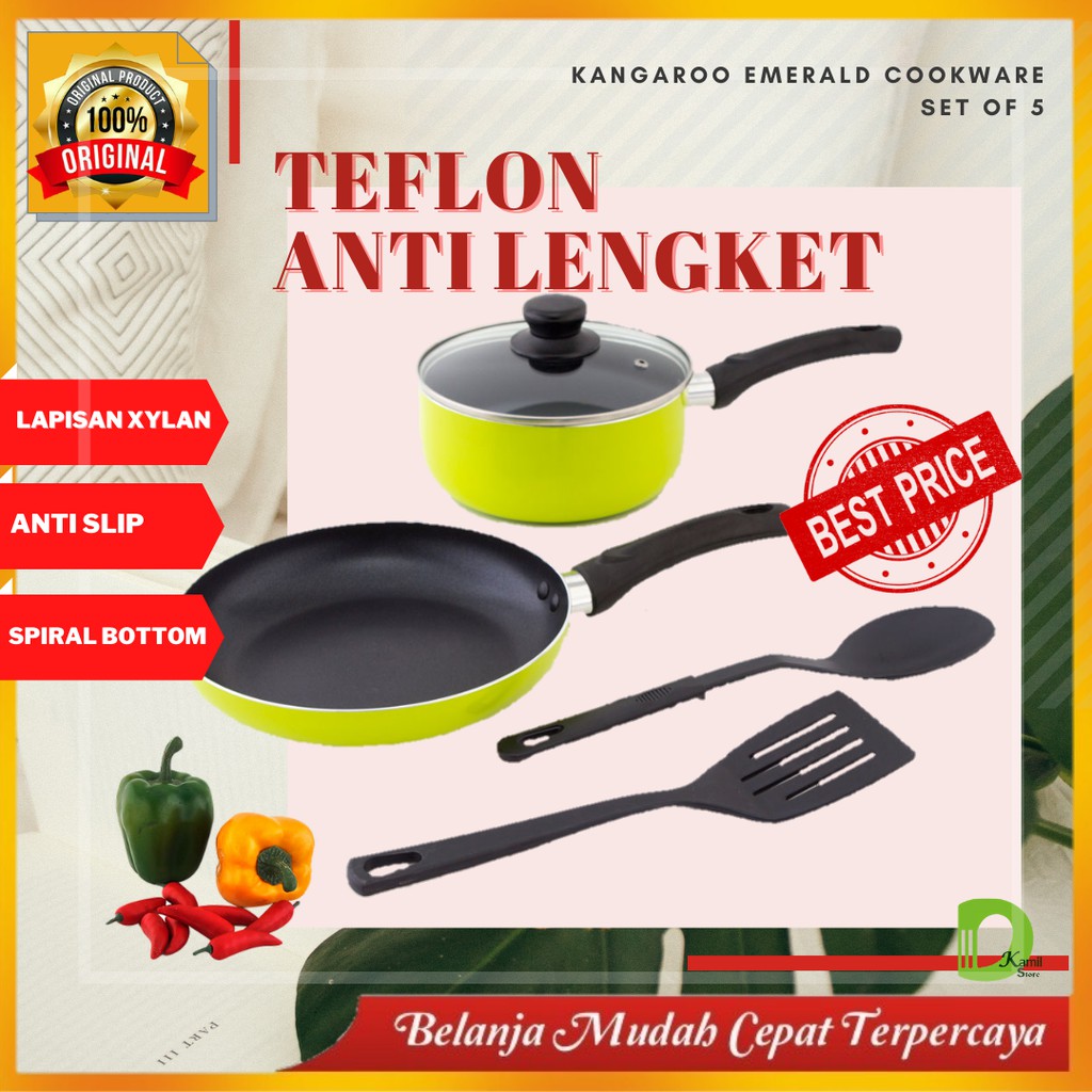 Name: Panci Wajan Teflon Anti Lengket Tanpa Minyak Set Of 5 Kangaroo Emerald Cookware Panggang Serbaguna