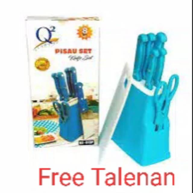 Deskripsi Produck Bisa Gosend Terdiri Dari 2 warna Apabila Warna Yg Di pesan habis Maka Kami Kirim RandomMembeli Berarti Setuju Spesifikasi :Q2 pisau set stainles set 8pcs pisau setlengkap memudahkan saat anda berada didapur, Q2 mempersembahkan pisau set 8 buah.1 set dilengkapi kotak tempat menyimpan pisau :5 pcs pisau1 pcs talenan1 pcs gunting Kini Q2 melengkapi peralatan dapur anda denganharga yang terjangkau.Isi dalam 1 paket :- 6.5'' Chopper- 8.0" Chef's knife- 6.5'' Boning knife- 5.0" Utility knife- 3.5" Paring knife- Gunting dapur- Plastic cutting board / telenan plastik- Wooden stand / Tempat pisau pla