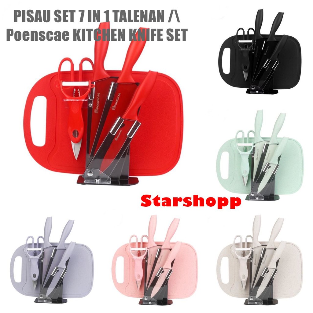 Toko Grosir Perlengkapan di Kabupaten Klaten 7 In 1 Kitchen Knife Set / Poenscae Talenan Pisau Tatakan Pengupas Gunting Dapur Set Pr114 dari Starshopp Kota Tanjung Pinang
