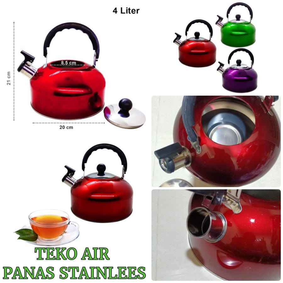 Teko Bunyi Siul 5 Liter Whistling Kettle Stainless Steel - WarnaTersedia Pilihan Warna :1. Hijau2. Biru3. Merah(jika memilih random artinya kita kirim random atau acak ALIAS GAK BISA PILIH WARNA)Deskripsi barang :•Bahan Stainless Steel •Handle tahan panas•Tebal, kuat dan Awet•Desain Ergonomis •Tidak ada sudut yang tajam •Teko akan berbunyi jika mendidih•Tampilan lebih elegant Isi Kemasan :1pcs - Teko Bunyi Happy Fun Whistling Kettle 5 Liter Stainless SteelDilengkapi Tutup ( Stainless St