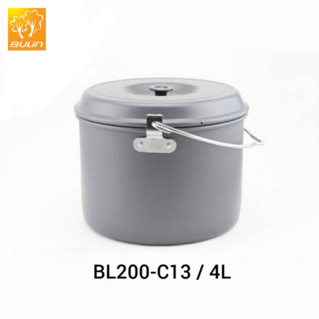 Features :-Brand : Bulin-Item : BL200-C13-Color : The same as picture-Size : *Big pot : 208 x 130 mm (4L) -Components : big pot-Purpose : Outdoor Cooking Pot, Camping Cooking Pots Sets, Camping Food Cooker.-Material : Hard anodizing aluminum-Weight :