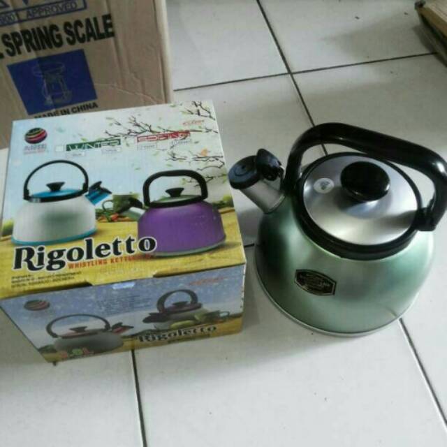 Teko Siul Whistling Kettle Maspion Rigoletto 3 liter (Produk Alcon / Maspion Group)- bunyi ketika air matang (produk tidak ditest bunyi, dikirim "sebagaimana adanya" dari pabrik Maspion)- kapasitas 3 liter- bahan bukan aluminium biasa tetapi oxide aluminium yang keras dan lebih tahan goresan (bukan lapisan coating)Kettle anodized ini merupakan teknologi dari Jepang yang banyak digunakan dalam pembuatan alat-alat masakPilihan Warna : Pink, Green, Violet, Blue**Boleh Pilih Warna ( Selama Persediaan Warna Masih Ada, Jika stok warna yang dipilih habis, akan digantikan dengan warna lain )**Keunggulan :- tidak lengket- tahan terhadap goresan- tidak karatan- tahan terhadap asam dan garam- mudah dibersihkan- warna kettle tetap cemerlang- hemat energy karena cepat panas- tidak beracunBisa menambahkan item bubble wrap dan kardus atau kertas kado (tersedia di pilihan produk) bisa di search di bagian produk dalam toko ini ya. Terima