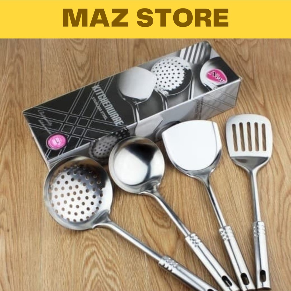 Spatula sodet alat masak sudah termasuk DUS.Material : Stainless SteelHigh QualityDesign ElegantTerdiri dari 4 barang macam sodet- anti karat- anti lengket- tahan panas- bahan aman & awet- KuatDeskripsi: Memudahkan aktivitas memasak di dapur karena satu set perelengkapan memasak ini memiliki 4 macam fungsi yang berbeda.#haappysho