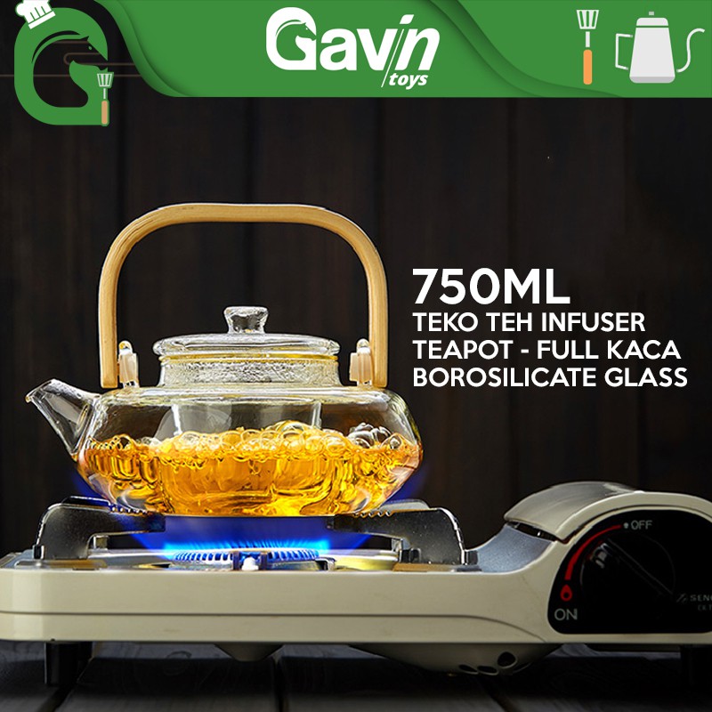 Teapot/Teko Teh Infuser berkapasitas 750ml ukuran ideal untuk menyeduh 4-5 cangkir teh. Berbahan kaca borosilicate yang mampu menahan panas sehingga bisa langsung dimasak di kompor api. Serta body full kaca transparan dan pegangan bambu alami yg membuat teko ini lebih artistik. Dilengkapi dengan infuser kaca yg dapat dilepas, untuk menyeduh semua jenis daun teh. Moncong yg dirancang bulat sehingga lebih mudah mengontrol air saat penuangan.Bentuk unik ala jepang menambah kesan elegan teapot ini, sangat cocok untuk di hotel, cafe, resto, dan rumahan.Detail :Jenis: Teapot (Japanese Style)Kapasitas: Ideal 750ml , max 800ml (4-5 cangkir teh)Bahan: Borosilicate glass (Body), Bambu (Pegangan)Warna: TransparantTahan suhu: -20°C - 150°CDiameter alas: 10.8cmTinggi: 14.6cmPanjang total: 18.4cmAman untuk mesin cuci piring, microwave, kompor api/gas*Warna pegangan akan berbeda-beda disetiap produk-------------------------------------Kenapa beli di Gavintoys:- Barang selalu ready stock siap instan kurir- Beli hari ini kirim hari ini.- Bubble wrap selalu gratis ga usah bayar- Kualitas barang selalu yang terbaik & melewati Quality control- Customer service 24jam siap membantuMasih ragu? boleh ngobrol dulu via chat mengenai barang ini, tim CS kita standby buat jawab semua pertanyaan agan.--- Perhatian barang pecah belah ----Barang pecah belah wajib di asuransikan..Kelalaian kurir jika pecah kami hanya bisa bantu claim asuransi dari marketplace.Disarankan menggunakan kurir sameday atau instan.-- Dengan membeli berarti menyetuj