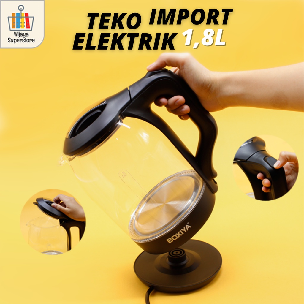 Teko ini merupakan alat pemanas air yg didesain secara otomatis untuk memudahkan para penggunanya. Sistem otomatis inilah kita tidak perlu khawatir ketika sedang memanaskan air. Karena dengan sistem otomatis inilah apabila air sudah mendidih secara otomatis akan OFF dengan sendirinya. Dengan modelnya yg elegan akan lebih menarik bagi para penggunanya juga.Spesifikasi :* Bahan stainless steel* Dilengkapi lampu indikator* Buka /tutup menggunakan tombol* Sistem proteksi ganda (otomatis OFF jika air sudah mendidih)* Penempatan pada alas 360 derajat* Elemen pemanas tersembunyi* Penyimpanan kabel yang praktis* Daya listrik 1500 W* Tegangan 220-240 Volt ,50-60 HzTipe :EK-01: Tinggi 24 cm, Lebar 16 cm, Berat : 775 gramEK-02: Tinggi ; 25 cm, Diameter : 16 cm, Berat : 790 gram Tersedia Warna Biru, dan PinkEK-03: Tinggi : 23 cm, Diameter : 14 cm, Tersedia Warna Biru dan Hijau Berat : 775 gram (2000 Ml)EK-05- : 25.5 cm, Diameter : 17 cmEK-06: Tinggi : 22 CM, Diameter : 15 cm (2000 Ml)EK-07 : Tinggi : 21 Cm, Diameter : 14 Cm (1800 Ml) EK-08 : Tinggi : 21 CM, Diameter : 14 cm (1800 Ml)EK-09 : Tinggi : 21.8 Cm, Diameter : 14.5 Cm (2500 Ml)EK-10 : Tinggi : 26.5 Cm, Diameter : 14 Cm (1800 Ml)EK-11 : Tinggi : 21 CM, Diameter : 14 cm (1800