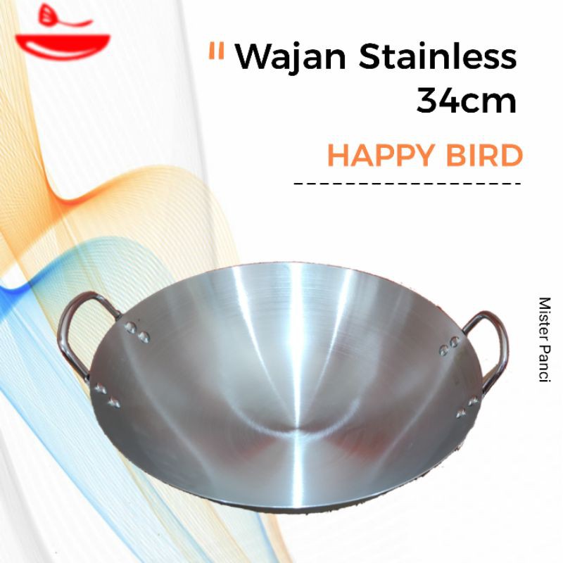 Name: Wajan/kuali Ukuran 34cm Bahan Stainless Steel Happy Bird Termurah