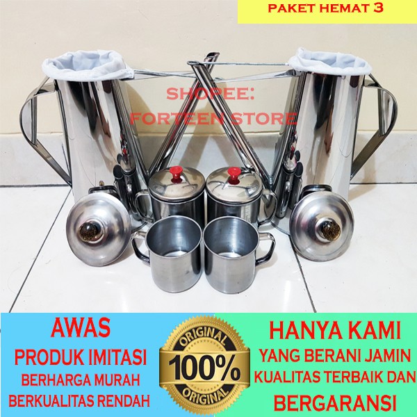 Kami Memberikan GARANSI Apabila Barang Yang DIterima RUSAK PARAH / Ada Bagian Yang PATAH / COPOT Silahkan di RETUR, Dengan Senang Hati Akan Kami Gantikan Yang Baru,Hati Hati Barang imitasi berharga murah, berkualitas rendah, Hanya kami yang berani memberikan garansi dan memberikan kualitas terbaik--------------------------TEKO-------------------------*Bahan Stainless Steel Tebal Dan Kokoh sehingga tidak mudah penyok*Tinggi +/- 24Cm dengan Kapasitas +/- 2,5 Liter*Barang Yang Dikirim Sudah LULUS QUALITY CONTROL Sehingga Tidak Usah Khawatir Bocor / Penyok*Dipacking Rapih Dengan KARDUS dan BUBBLE WRAP-------------------MUG TUTUP--------------------*Bahan Stainless + Tutup Mug*Ukuran 9cm-----------------------MUG------------------------*Bahan Stainless*Ukuran 8cm--------------------SARINGAN--------------------*Bahan Kain*Panjang 24cm--------------------KOCOKAN--------------------*Bahan Stainless --------------------JIGGER--------------------*Bahan Stainless--------------------SENDOK TAKAR--------------------*Kapasitas 15gr7,5gr5gr2.5gr