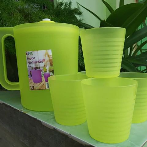 Yeppo pitcher set Teko set 5 gelas Terdiri dari 1 Teko dan 5 Gelas*Volume Teko 2,6L dan Gelas 5X300 ml*Material Pastik PPTeko ini cocok banget buat kamu dirumah atau piknik, bahannya tentunya tebal dan finishingnya cantik, lengkap dengan gelas sehingga serasi mempercantik tampilan sajian minuman kamu. ayo oleksi semu