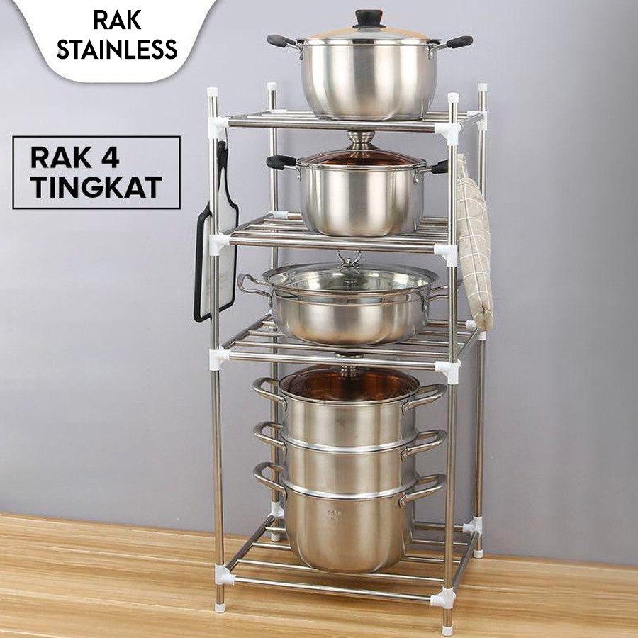 PERHATIAN‼️BARANG PECAH BELAH MOHON TAMBAHKAN BUBBLE WRAP‼️Kami tidak bertanggung jawab jika ada kerusakan barang apapun karena KESALAHAN EKSPEDISIHAPPY SHOPPING :)Kode : RUN2/ RUN4 Spesifikasi = - Ukuran Rak 2 Tingkat : 22 x 35 x 52 Cm- Ukuran Rak 3 Tingkat : 43 x 36 x 94 Cm- Bahan : Stainless Steel- Berat : [ 1000 Gr ]Fitur =-Rak Dapur ini merupakan rak susun untuk perlengkapan dapur seperti panci, wajan, Teflon dll. Membuat dapur Anda lebih hemat ruang, rapih, teratur dan mudah dicari. -Rak Dapur in juga terbuat dari material stainless yang tebal dan struktur rak yang kokoh sehingga setiap tingkat dapat menampung beban berat, tanpa khawatir roboh. -Kapasitas besar dan jarak antar tingkat lebar sehingga bisa muat peralatan dapur yang ukuran besar. -Penyambung plastik dengan bahan yang tebal tidak mudah pecah.-Selain sebagai rak dapur, rak ini juga dapat digunakan sebagai rak kamar mandi, desain yang merongga menjaga tetap kering, anti-bakteri dan air tidak tergen